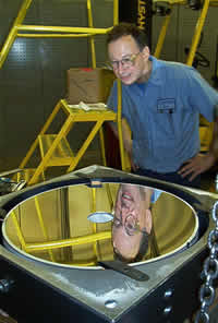 Eighteen years in the making, the 20-inch Panarusky Telescope is ready to show you the heavens. The first public showing of this research-grade telescope occurred on Thursday, May 16, 2002, at Carlson Tool & Manufacturing. That day was a very special day for everyone involved in the project, and we have a page devoted to the first light activities.